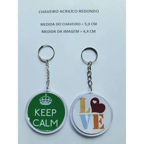 Chaveiro de acrílico redondo para personalizar . Pacote com 100 unidades , os chaveiros são embalados individualmente , um chaveiro e uma tampa . Fabricado com poliestireno cristal virgem .Montagem do chaveiro : encaixar as 2 imagens e pressionar a tampa.Dimensão do chaveiro : 5,0 cmDimensão da arte : 4,4 cm Cor : transparenteNão acompanha a arte Marca: Jax brindes
