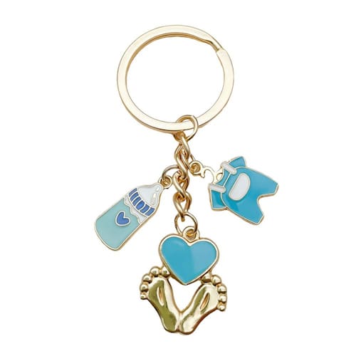 • Design encantador para bebês: este chaveiro apresenta mamadeira, roupas azuis, coração e pés minúsculos, o que o torna um presente adorável para chás de bebê, pais novos ou qualquer pessoa que adore acessórios temáticos para bebês. • Material de alta qualidade: feito com liga e esmalte duráveis, este chaveiro garante qualidade duradoura e um acabamento lindo e brilhante. Os itens para bebês são delicadamente detalhados para dar uma aparência vibrante. • Presente perfeito para chá de bebê: uma ótima ideia de presente para chás de bebê, aniversários ou outras ocasiões especiais. Este lindo e significativo chaveiro é perfeito para novos pais, amantes de bebês ou qualquer pessoa que esteja esperando um filho. • Versátil e prático: coloque este lindo chaveiro em sua bolsa, chaves ou use-o como um pingente decorativo para presentes ou lembrancinhas. Ele traz um toque extra de charme aos seus pertences ou ao seu evento especial. • Compacto e leve: pesando apenas 11,3 g, este chaveiro é leve e fácil de transportar. Seu tamanho compacto o torna um acessório conveniente e adorável, perfeito para manter as memórias por perto onde quer que você vá.