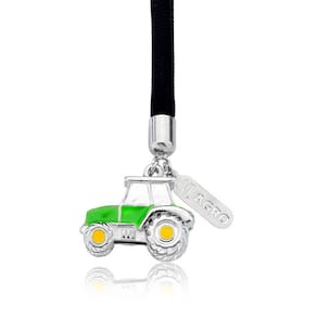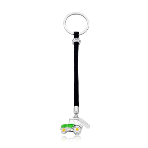 Este chaveiro foi elaborado com um pingente Trator tridimensional, com esmaltação verde, paracord na cor preta e argola em inox.