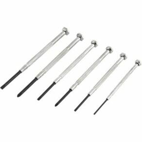 Indicado para relojoarias, eletrônicas, serviços de precisão, entre outros. Possui haste em aço cromado, ranhuras que conferem maior aderência e transmissão de força, ponta em aço temperado de alta resistência e apoio superior giratório que facilita a execução do trabalho Conteúdo da Embalagem: 1 Jogo de chaves fenda/phillips de precisão, composto por estojo plástico com 6 peças, sendo: 4 fenda 1,4 mm, 2,0 mm, 2,4 mm e 3,0 mm 2 phillips nº 0 - 1/8 e n° 1 - 3/16 Especificações: Material do corpo da chave: Aço carbono Acabamento da Chave: Fosfatado preto Ean: 7893946493516