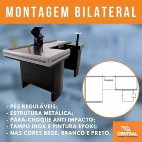 Sua montagem bilateral possibilita uma melhor comodidade para o seu negócio, podendo dispor o equipamento para ambos os lados. Possui recorte para balança Toledo 8217 ou URANO CHECKOUT UDC CO E 30/2