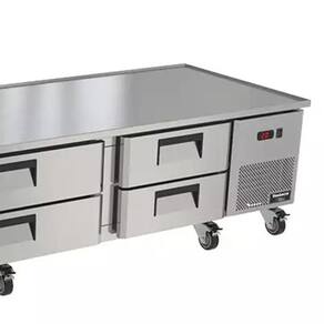 Utilizando gás R290, um fluido natural que não prejudica a camada de ozônio, o Chef Base combina alta eficiência energética com um sistema de refrigeração por ar forçado e tecnologia Frost Free, garantindo temperatura uniforme e degelo automático. Seu acabamento interno em inox 430 brilhoso e externo em inox 430 escovado oferece durabilidade e fácil limpeza, enquanto os cantos internos chanfrados soldados facilitam a circulação do ar e a higienização. Equipado com rodízios resistentes e travas, o Chef Base permite fácil deslocamento, e as corrediças das gavetas com rolamentos blindados garantem abertura suave e durável. Acompanha cestos perfurados e divisórias para cubas padrão 1/3, 1/2 e 1/1, proporcionando máxima versatilidade no armazenamento.