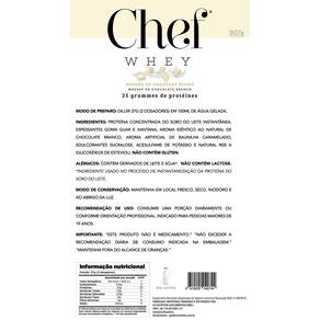 chef whey protein é um suplemento de whey protein gourmet, excelente para atletas e praticantes de atividades físicas que buscam por construção, manutenção e recuperação muscular. Utiliza como fonte de proteína whey protein concentrado zero lactose, a forma mais pura de whey protein que existe. Assim, cada porção de chef whey protein da chef whey contém 25g da mais pura proteína para ganho de massa muscular por dose. Possui o mais alto valor biológico da proteína e a maior capacidade de absorção pelo organismo, além de ser rico em aminoácidos essenciais como o bcaa, elemento diretamente ligado ao aumento da massa muscular magra e à reconstrução dos músculos. Benefícios: tem ação antioxidante; zero lactose; ideal para quem busca o e/ou definição; auxilia no ganho de massa muscular; fortalece o sistema imunológico; auxilia na manutenção e recuperação muscular; equilíbrio do nitrogênio; proteínas de qualidade; alta concentração de bcaa por dose; alto teor de leucina; 25 g de proteínas por dose; não contém glúten; baixa quantidade de carboidratos; auxilia na recuperação muscular. Como tomar: misture 35g dois medidores completo em 150ml de água. Consumir uma porção diariamente ou conforme orientação de um nutricionista ou médico.
