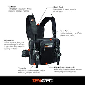 - Sempre traga um sobressalente | O peitoral mais avançado da Ten4Tec para técnicos inclui espaço para dois rádios.