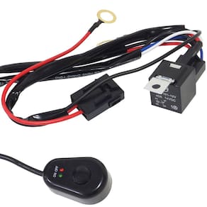 Chicote para farol de milha, barra led, entre outros, universal para adaptação. Possui kit de chicote com relé de 40A, fusível e botão liga/desliga com indicação em led, contendo saída para ligar um ou dois faróis.