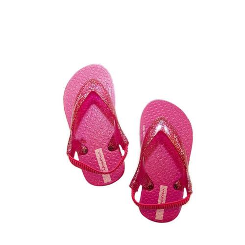 O produto conta com palmilha toda de glitter e tira translúcida, também com glitter, puro glamour para os pés das pequenas. A cartela de cores é doce com cores de sucesso.