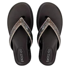Chinelo Beira Rio Plataforma Casual Conforto Strass Feminino Conforto Preto