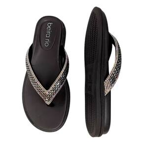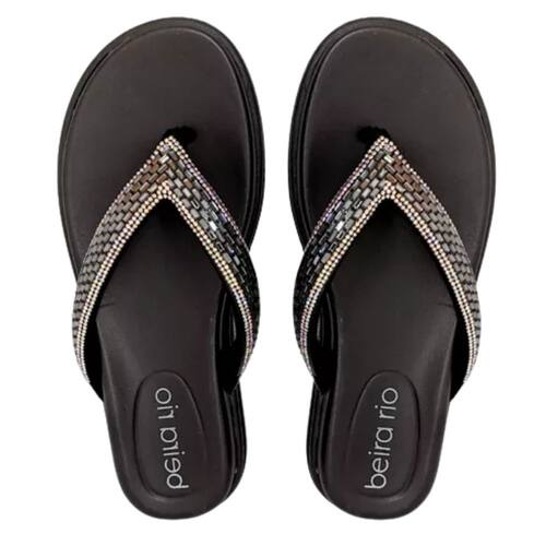 Chinelo Beira Rio Plataforma Casual Conforto Strass Feminino Conforto Preto