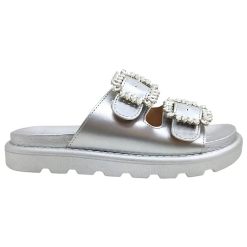 Chinelo Birken Feminino Casual Dia a Dia com Pedrarias Ultra Conforto Vizzano 6510.306 - 34 - Prata