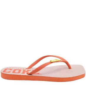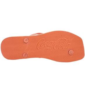 * O chinelo Coca-Cola é uma escolha perfeita para quem busca conforto e praticidade. * Cabedal em sintético emborrachado macio; * Tira com adereço da marca metalizado localizado na lateral externa; * Palmilha com estampa; * Bico redondo; * Solado emborrachado que garante segurança e estabilidade ao caminhar; * Medida do solado: 1,5cm. * Modelo super leve e estiloso, oportunizando a combinação de vários looks despojados.