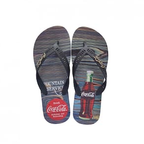 * O chinelo Coca-Cola é uma escolha perfeita para quem busca conforto e praticidade. * Cabedal em sintético emborrachado macio; * Tira com adereço da marca metalizado localizado na lateral externa; * Palmilha com estampa; * Bico redondo; * Solado emborrachado que garante segurança e estabilidade ao caminhar; * Medida do solado: 1,5cm. * Modelo super leve e estiloso, oportunizando a combinação de vários looks despojados.