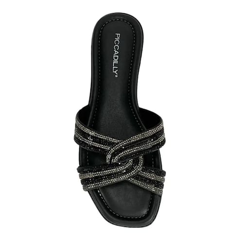 Chinelo com strass bicolor Piccadilly - Preto - 37