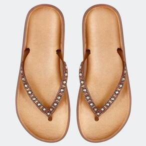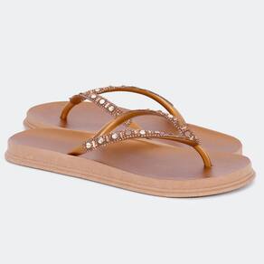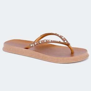 A união entre conforto e praticidade: chinelo! Solado flatform, palmilhas mais largas que garantem muito conforto! O chinelo é produzida no tom champagne, possui bico redondo, tiras finas trabalhadas com cristais em todo cabedal e palmilha anatômica, trazendo ainda mais conforto e praticidade para o seu dia a dia.