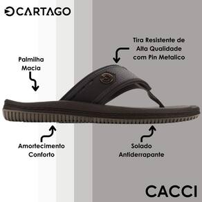 O Cartago Fiji é sucesso pelo seu conforto! O produto conta com forro em EVA nas tiras, um acabamento de couro queimado com um detalhe de cor em listra na lateral assim como um pin metálico para destacar o logo de Cartago. Além disso, a palmilha oferece mais maciez no calce com relevos e o system no calcanhar. Um produto confortável e estiloso para o seu dia a dia!