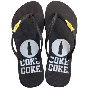 A Coca-Cola é uma empresa mundialmente conhecida e que tem se expandido para o segmento de calçados. Com uma linha diferenciada de tênis, abotinados, sandálias e agora chinelos, que, ajudam a espalhar toda a vibração e otimismo da Coca-Cola através de produtos de qualidade e muito estilo para quem os veste. Este modelo é confeccionado em borracha por completo. Suas tiras são finas e contam com uma aplicação metálica com o formato de uma garrafa de Coca-Cola. O mesmo conta com palmilha reta (modelo tradicional) para encaixe dos pés com a junção de conforto e fácil higienização, além de conter relevos pelo solado do produto com o formato da garrafinha mais amada do Brasil. Solado em borracha antiderrapante.