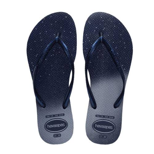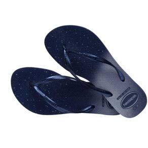 Com glitter holográfico na sola e nas tiras, a Havaianas Slim Gloss é o modelo mais indicado para quem não tem medo nenhum de brilhar por aí. No formato da sandália Slim, queridinha do público, a Slim Gloss tem sola e tiras fininhas, com pitadas espertas de glitter. Para quem curte um visual charmoso e zero básico!