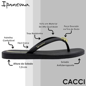 O chinelo Ipanema com detalhe metálico na tira do dedo foi criado para quem faz questão de unir elegância discreta e conforto absoluto em todos os momentos. Produzido em material de alta qualidade, ele oferece leveza e resistência para encarar a rotina com tranquilidade, desde idas rápidas ao mercado até longas caminhadas à beira-mar. As tiras robustas moldam-se perfeitamente aos pés, garantindo firmeza sem apertar e destacando o delicado aplique dourado que eleva instantaneamente o visual, transformando um item básico em um acessório de estilo. A palmilha anatômica, texturizada e macia, absorve o impacto de cada passo, enquanto o solado antiderrapante de 1,5 cm proporciona estabilidade em pisos secos ou molhados para que você se movimente com total segurança. O design de calce fácil agiliza o vestir e favorece a sensação de liberdade, e sua construção resistente à água facilita a higienização, mantendo o chinelo sempre bonito e pronto para uso. Versátil e atemporal, combina com jeans, vestidos leves, saídas de praia ou mesmo roupas de ficar em casa, sendo a opção perfeita para quem busca praticidade sem abrir mão de um toque sofisticado em qualquer ocasião.