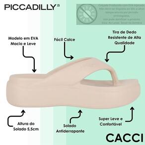 O Chinelo Feminino Piccadilly é sinônimo de conforto, leveza e praticidade. Desenvolvido para proporcionar uma sensação suave ao caminhar, ele é ideal para quem busca um calçado versátil e agradável para o dia a dia. Seu design moderno une o visual casual com o bem-estar que só um modelo leve e anatômico pode oferecer, tornando-se perfeito para momentos de lazer, descanso ou para compor produções descontraídas com muito estilo.