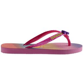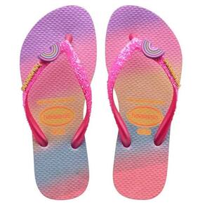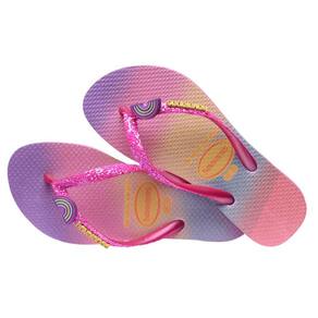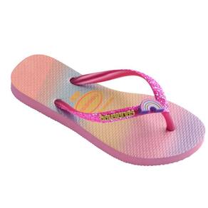 As crianças fashionistas vão pirar com as Havaianas Kids Slim Glitter II. A sandália traz estampas inspiradas em um mundo fantástico, com direito a asas de fada e estrelas supercoloridas cheias de glitter holográfico. As tiras ganham ainda mais brilho e um charmoso acessório central. Irresistível!