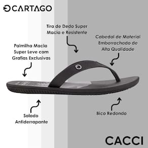 Desenvolvido em borracha por completo, suas tiras são em V e possui o logo da marca em alto relevo. O mesmo conta com palmilha reta (modelo tradicional), de fácil higienização. Seu solado foi desenvolvido em borracha antiderrapante, dando maior segurança durante o caminhar.