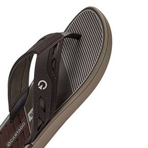 O solado é texturizado, garantindo aderência e estabilidade em diferentes superfícies. O modelo apresenta detalhes em relevo e uma estampa moderna, adicionando um toque de estilo ao calçado. O chinelo é prático e fácil de calçar.