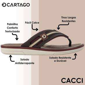Um chinelo de dedo moderno e elegante para todos os dias, o Cartago Lyon III tem conforto na palmilha, dedeira, cabedal e sola. As combinações de cores e detalhes no cabedal complementam seus looks casuais em todas as ocasiões.