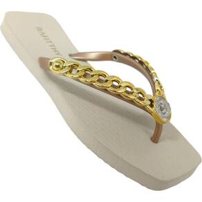 Chinelo Dedo Feminino Casual Dia a Dia Passeio Praia Verão Com Pedraria Rafitthy 249.16100 - 33-34 - Branco