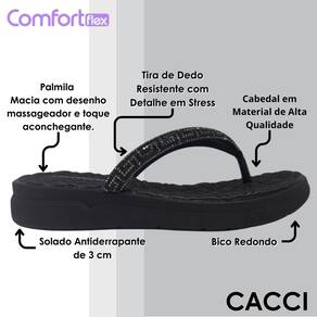 Com um salto baixo de 2,5 cm e bico arredondado, este chinelo oferece uma pisada firme e segura, ideal para caminhar com confiança e sem desconforto. A altura de salto é perfeitamente equilibrada para proporcionar conforto ao longo do dia, tornando-o uma excelente opção para quem valoriza o bem-estar dos pés.