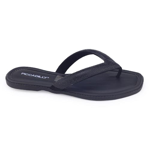 O Chinelo Piccadilly 508039 é ideal para o seu dia a dia, este calçado é muito leve e confortável conta com um solado baixo, para calçar o dia todo. Seu cabedal é fabricado em material sintético com detalhe em tiras cravejadas com strass, para calçar basta colocar o pé. Seu interior é todo revestido em material têxtil e sua palmilha é fixa em material sintético almofadado tornando o calçado confortável. O seu solado é baixo, possui 1cm de altura traseiro e 0,5cm de altura frontal, com acabamento liso, o solado apresenta frisos para maior segurança.