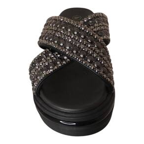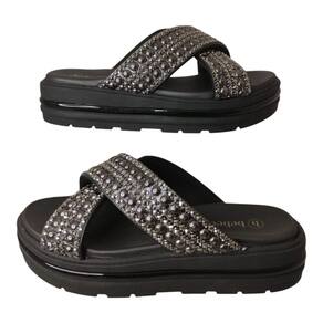 A plataforma flat proporciona estabilidade e conforto, enquanto o acabamento com pedraria nas tiras adiciona um brilho especial ao seu visual. Com design prático e ajustável, este chinelo garante um encaixe perfeito, realçando ainda mais a elegância do modelo.