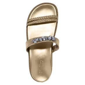 Visual moderno e todo o conforto da palmilha anatômica e salto flatform. Seu design distinto combina harmoniosamente com as pedras delicadamente incorporadas, criando um visual único que chama a atenção.