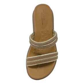Design que encanta: tiras médias maleáveis e resistentes, com detalhes de tranças e acabamentos metalizados, que adicionam sofisticação e charme ao modelo.