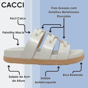Versatilidade Garantida: Seja para ocasiões mais descontraídas ou momentos que pedem um toque de sofisticação, o Chinelo Slide da Cacci é a escolha perfeita para quem busca uma peça versátil e estilosa.