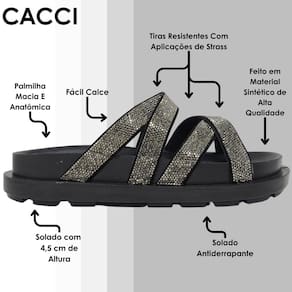 Conheça o novo chinelo Strass da Cacci, o chinelo de se apaixonar por onde for! Feito em material de alta qualidade que trás mais durabilidade ao calçado. Seu destaque é feito por suas tiras repletas de strass aplicados, que trás todo seu charme e atenção, além de tiras resistêntes ela se torna um chinelo fácil calce.