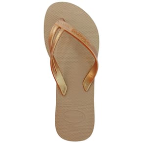 A Havaianas Elegance é simples e luxuosa ao mesmo tempo: os chinelos têm todo o conforto Havaianas que você já conhece e tiras lisas metalizadas com um filete vazado em um dos lados. Disponível numa cartela de cores sofisticada.