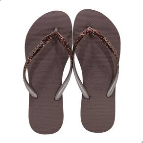 A Havaianas Slim Glitter II tem uma paleta de cores sofisticada e um novo formato do glitter aplicado nas tiras, que reflete a luz de uma maneira mais pura e deixa o modelo ainda mais brilhante.