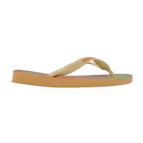A Havaianas Top Fashion é o chinelo super gostoso que você já conhece com uma estampa degradê em cores quentes e solares na sola. As tiras combinam com os tons em destaque e o logo é do tipo pop-up.