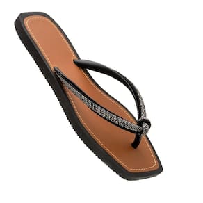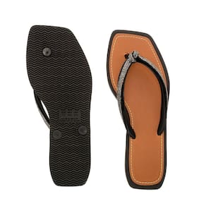Chinelo Feminino Moderno Casual Detalhe em Brilho - 37 - Preto