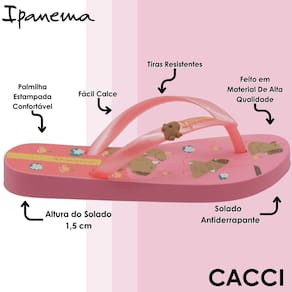 O chinelo feminino Ipanema adulto é a escolha perfeita para quem busca conforto, estilo e qualidade em um único produto. Com palmilha estampada superconfortável, ele garante uma experiência leve e agradável ao caminhar, ideal para o dia a dia ou momentos de lazer. O design encantador traz tiras resistentes com acabamento brilhante e um detalhe em miniatura que adiciona um toque divertido e delicado ao visual. Fabricado com material de alta qualidade, o chinelo é flexível, durável e se adapta com facilidade aos pés, proporcionando um encaixe confortável desde o primeiro uso. A altura do solado de 1,5 cm oferece leve elevação sem comprometer a estabilidade, enquanto o solado antiderrapante garante segurança em diferentes tipos de piso, incluindo ambientes molhados. O fácil calce torna o uso ainda mais prático, perfeito para a correria do dia a dia. Além disso, o visual alegre e moderno permite combinações com looks casuais, de praia ou até mesmo para curtir momentos de descanso com estilo. É um modelo versátil, que une funcionalidade e beleza com a assinatura da Ipanema, uma marca reconhecida por criar calçados que acompanham as tendências e respeitam o bem-estar.