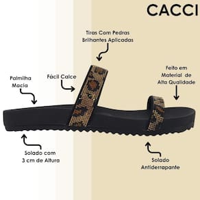 O novo chinelo da Cacci é a escolha perfeita para quem busca unir elegância e conforto em um só calçado. Com um design moderno e sofisticado, ela traz o charme das tiras, que adicionam um toque de glamour ao visual. O solado antiderrapante oferece estabilidade e segurança para que você se sinta confiante a cada passo. Ideal para compor looks que vão do casual ao elegante, essa sandália é uma combinação perfeita de estilo e praticidade.