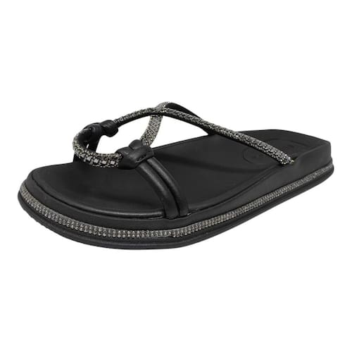 Tiras Elegantes com Detalhes Brilhantes: As tiras macias e resistentes, enlaçadas com aplicação de strass e pedrarias, garantem um toque de glamour único.