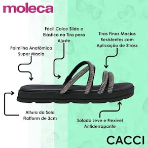 O Chinelo Feminino Slide Papete Brilho da Moleca traz sofisticação e praticidade para compor seus looks com muito charme.