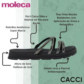 O Chinelo Feminino Slide Papete Brilho da Moleca traz sofisticação e praticidade para compor seus looks com muito charme.