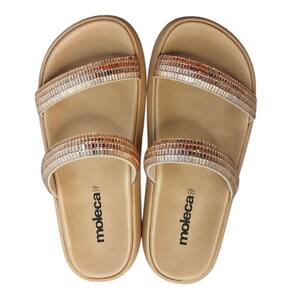 Esse modelo é uma ótima pedida para compor produções com vestidos, shorts, saias ou calças mais leves. Com a Moleca, você anda com leveza, brilho e muito conforto!