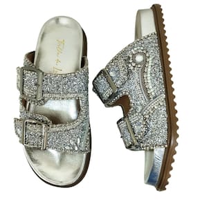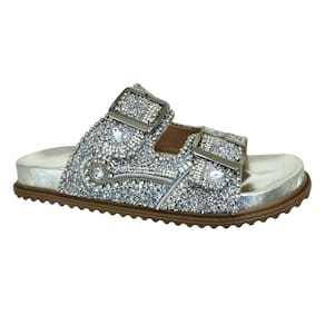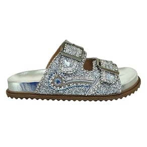 Brilhe em cada passo com o Chinelo Feminino Papete Trilha Da Lua Tiras Brilho Couro Prata. Inspirado na majestade das noites estreladas, este chinelo combina elegância e conforto para proporcionar uma experiência única aos seus pés.