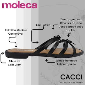 A sandália Moleca é a opção ideal para quem busca conforto e praticidade no dia a dia. Elaborada em material sintético de alta qualidade, este modelo rasteiro oferece leveza e durabilidade. Seu design é moderno e versátil, perfeito para complementar looks casuais e descontraídos. Com palmilha macia e solado antiderrapante, garante um caminhar confortável e seguro. Uma escolha perfeita para os dias quentes, trazendo estilo sem abrir mão do bem-estar!