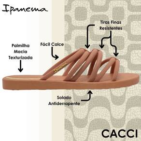 Para esta versão do slide trabalhamos as multi tiras com diferentes texturas, sendo elas polidas e de cordão têxtil. A sola traz a textura da calçada de Ipanema reinterpretada e que segue na lateral da sola, uma super novidade no ponto de venda.