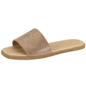 Seu design slip-on facilita o calce e proporciona praticidade no dia a dia. Além disso, sua sola rasteira oferece estabilidade e conforto a cada passo, tornando-o ideal para uso prolongado em diversas ocasiões. Conta com um tira larga super resistente com aplicação de strass, trazendo brilho e glamour.