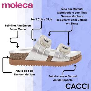 O Chinelo Feminino Slide Metalizado da Moleca é perfeito para quem deseja unir modernidade, conforto e um toque de brilho ao visual. Com um design encantador e detalhes que fazem a diferença, ele é a escolha certa para os seus momentos mais descontraídos.