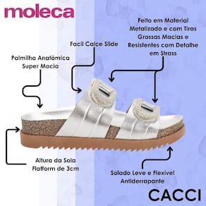 O Chinelo Feminino Slide Metalizado da Moleca é perfeito para quem deseja unir modernidade, conforto e um toque de brilho ao visual. Com um design encantador e detalhes que fazem a diferença, ele é a escolha certa para os seus momentos mais descontraídos.